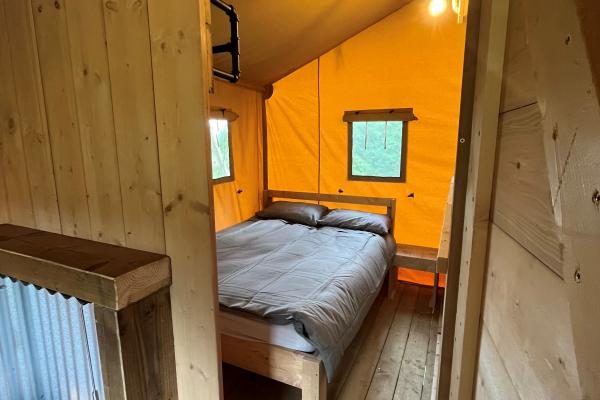 There are 2 bedrooms in the Safari Tent - a double bedroom and a bunk bed room. Also inside your tent you have your own bathroom, complete with shower, toilet and basin. On site we also have 2 well equiped family shower rooms if you would prefer a little bit more space.