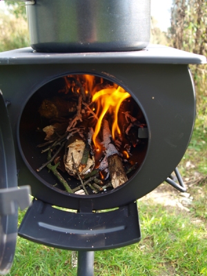 The Frontier Stove soon heated up and we were able to easily boil water on it throughout the afternoon, closing the door and adjusting the flue provided more heat to the cooking surface but we opted to keep the door open and enjoy the view of the naked flames nearby.